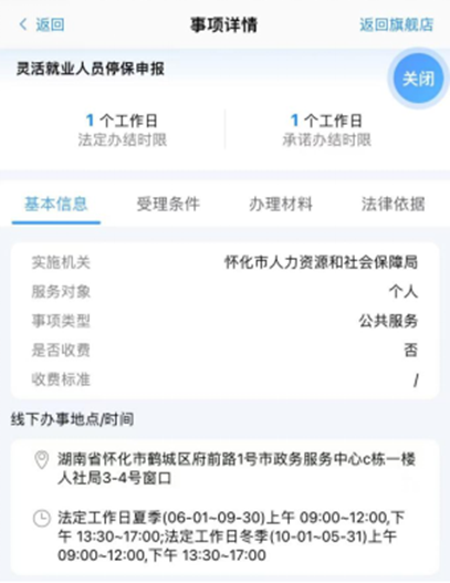 用戶可在線查看可幫辦事項的基本信息,如基本信息、受理條件、辦理材料、法律依據(jù)等。