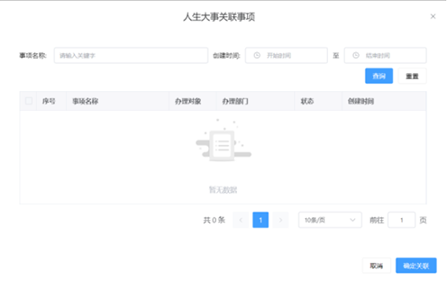 新增事項可配置事項相關(guān)流程,并將已有事項或其他事項進行關(guān)聯(lián)互通。